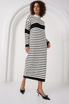 Merterium 15898 Çizgili Uzun Triko Elbise - B.Beyaz
