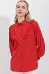 20223 Fırfırlı Uzun Kol Gömlek - Beyaz