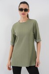 Merterium 4332 Yanı Yırtmaçlı Örme Tişört - Turuncu