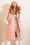Merterium 5140 Kapşonlu Uzun Şişme Yelek - Bej