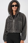Merterium 5193 Kapüşonlu Peluş Crop Ceket - Ekru