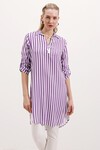 5613 Yaka Bağcıklı Çizgili Tunik - Kahverengi