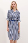 Merterium 5629 Çizgili Kemerli Elbise - Vizon