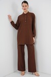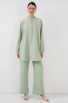 Merterium 6678 Keten Tunik Pantolon İkili Takım - Bej