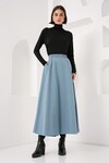 Merterium Kadın Cep Detaylı Uzun Etek 8024 - Krem