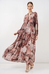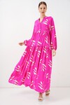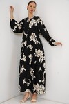 Kadın Desenli Uzun Tesettür Elbise 2585 - A.Sarı