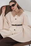 Kadın Kemerli Kaşe Panço 9165 - Kahverengi