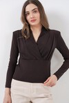 Kadin Omuz Vatkali Kruvaze Yaka Bluz 942