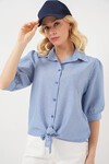 Kadın Önü Bağlamalı Çizgili Gömlek 20323 - Mavi
