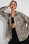 Kadin Oversize Desenli Saten Gömlek 20365