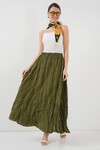 Merterium Kadın Uzun Kırışık Etek 8042 - Zümrüt Yeşili