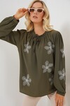 Merterium Kadın Uzun Kol Nakışlı Örme Bluz 951 - Siyah
