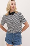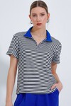 Merterium Kadın Yeşil Polo Yaka Fermuarlı Çizgili Tişört 0497