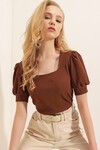 Kare Yaka Örme Bluz