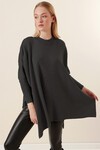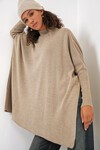 Yandan Yirtmaçli Oversize Panço Triko Kazak