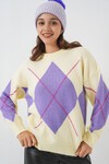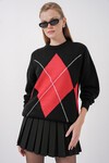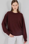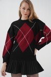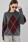 15895 Baklava Desenli Oversize Triko Kazak - Bordo