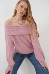 Kadin Açik Omuz Oversize Triko Kazak