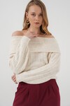 15908 Kadın Açık Omuz Oversize Triko Kazak - Beyaz