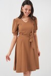 Merterium 2370 Kuşaklı Örme Elbise - Siyah