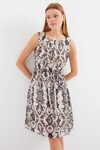 Desenli Sifir Kol Sifon Elbise