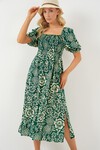 Merterium 2512 Desenli Yırtmaçlı Elbise - Siyah