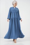 2527 Kadın Uzun Tesettür Elbise - Gri