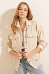 Çizgili Kadife Gömlek, Cepli Dügmeli Gömlek