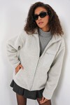 Merterium 55455 Kadın Fermuarlı Oversize Peluş Ceket - Saks