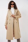Merterium 5940 Kadın Kruvaze Yaka Uzun Trençkot - Lacivert
