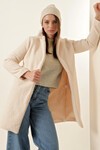 Merterium 9082 Oversize Kaşe Kaban - Beyaz