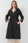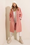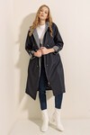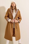 Merterium 9091 Beli Büzgülü Kapşonlu Trençkot - Haki