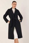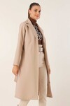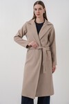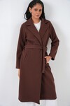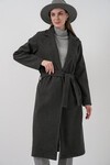 9118 Kruvaze Yaka Kaşe Kaban - Füme