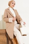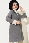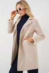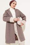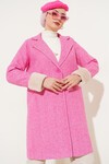Merterium 9145 Kadın Kolları Tüylü Balık Sırtı Kaşe Kaban - Kırmızı