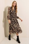 Desenli Sifon Elbise,Içi Astarli Sifon Elbise, V Yaka Sifon Elbise, Dügmeli Sifon Elbise