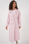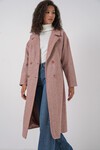 Merterium Fuşya Oversize Geniş Kesim Yünlü Uzun Kaşe Kaban 9113