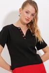 Merterium Kadın Beyaz Düğme Detaylı Kısa Kol Tişört 903