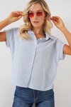 Merterium Kadın Çizgili Kısa Kol Gömlek 20324 - Açık Mavi