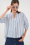 Kadın Çizgili Oversize Bluz 967 - Pudra