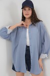 Merterium Kadın Çizgili Oversize Gömlek 20295 - Krem