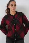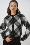 Kadın Desenli Düğmeli Triko Hırka 15927 - Antrasit