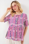 Kadin Desenli Kisa Kol Bluz