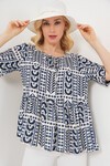 Kadın Desenli Kısa Kol Bluz 969 - Lacivert