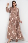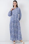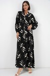Kadın Desenli Uzun Tesettür Elbise 2585 - H. Siyah
