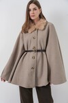 Kadın Kemerli Kaşe Panço 9165 - Krem