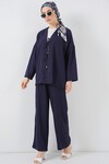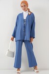 Kadın Keten Kimono İkili Takım 6727 - Mavi