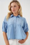 Merterium Kadın Kısa Kol Crop Gömlek 20335 - Sarı
