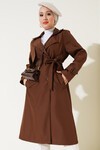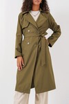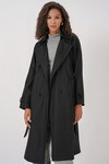 Merterium Kadın Kruvaze Yaka Kuşaklı Trençkot - Gri