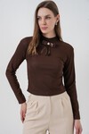 Kadın Kurdale Detay Uzun Kollu Bluz 977 - Beyaz