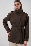 Kadın Kuşaklı Kaşe Kaban 9162 - Ekru