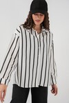 Merterium Kadın Lacivert Beyaz Çizgili Oversize Basic Gömlek 20254